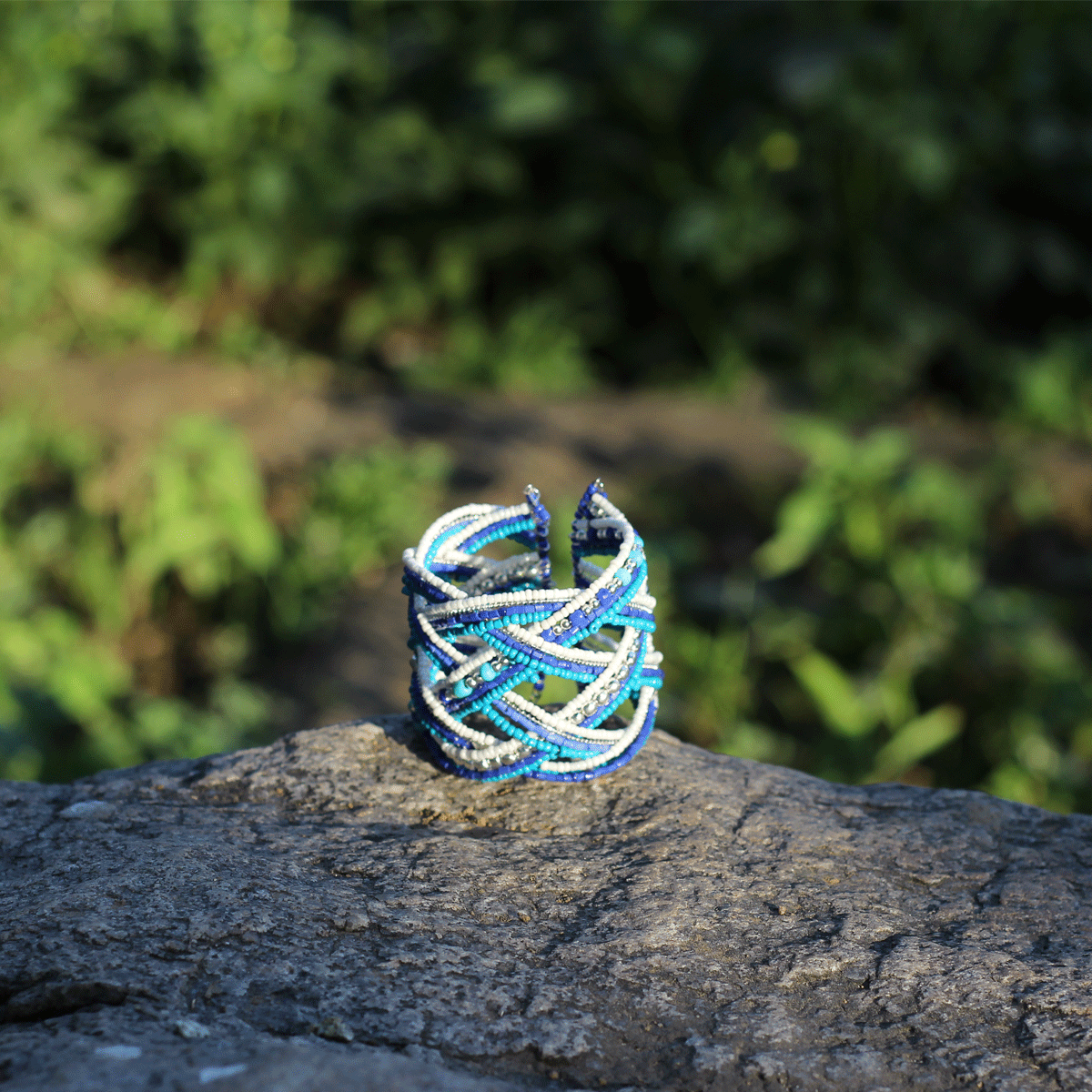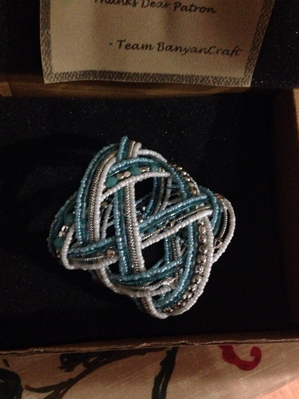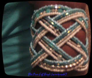 The beading is done well especially how it intersects into the cuff. Also, the choice to use different types of beads really adds to detailing of the bangle.