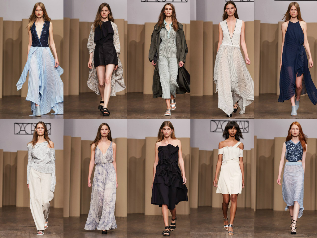 House of Dagmar took viewers on a stroll on a warm summer night.   Light Beige, Grey, Blue and Pale Pink are the color used throughout this collection.