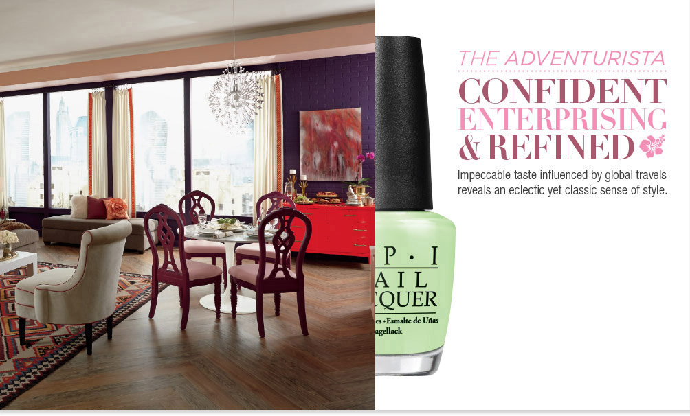 The Adventurista is for the confident, enterprising and refined. OPI colors included in this collection are Is Mai Tai Crooked?, That’s Hula-rious!, Hello Hawaii Ya?, Do You Take Lei Away?, Suzi Shops & Island Hops, Just Lanai-ing Around, Lost My Bikini in Molokini and Aloha from OPI. These colors are parts of the Hawaii Collection. As for the Clark + Kensington pairings colors include Chalk CW-C2, Peaceful Forest 27B-5, Town Square N-C2, Falling Rain N-C25 and Tea & Biscuits N-W15.