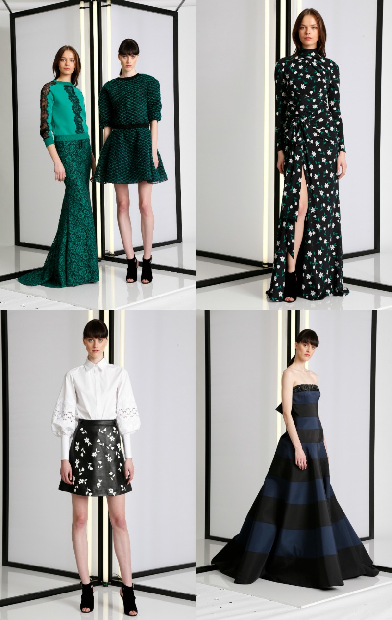 The silhouette for this collection is daytime and glamorous for the evening according to Herrera. This is the 1st time Herrera is including sweatshirts in the lineup and especially for this occasion. The standout from this collection are the green pieces.