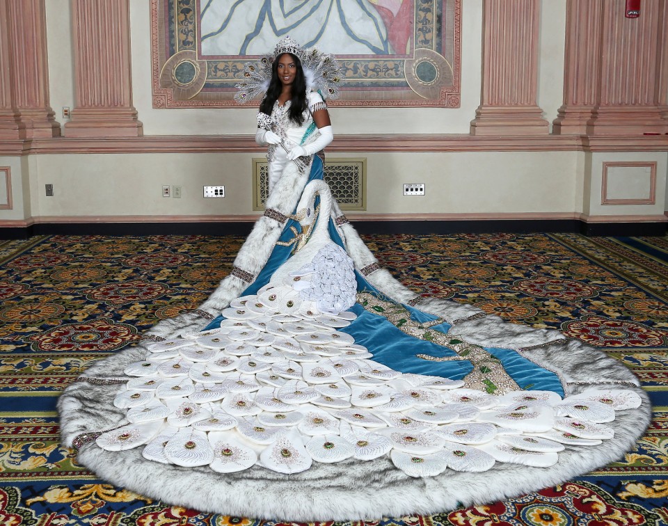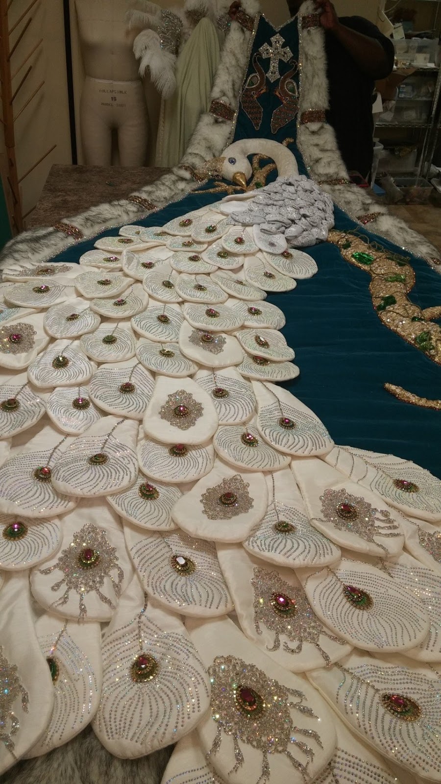 Growing up in the south, I can remember being in awe of the intricate trains worn by the King and Queen. Kings and Queens are chosen from various Mardi Gras societies. I wondered who the designer was and what the meaning behind the symbols. Now that I am older I realized just how much work goes into making the eye-catching trains and gowns.
