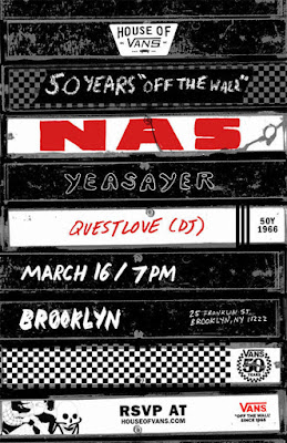 Today marks the 50th anniversary of the skater –inspired shoe and casualwear brand. In honor to celebrate they are having an event called “Off the Wall” taking place at House of Vans in Brooklyn, House of Vans at the Mohawk at SXSW in Austin, and House of Vans in Toronto, Canada.   According to their website the event includes sports, art, music and street culture with a worldwide celebration of creative expression.  Performers include Nas, Dinosaur Jr., Wu-Tang Clan, The Kills, Erykah Badu, Jamie xx, Dizzee Rascal, Yeasayer, and Shlohmo.