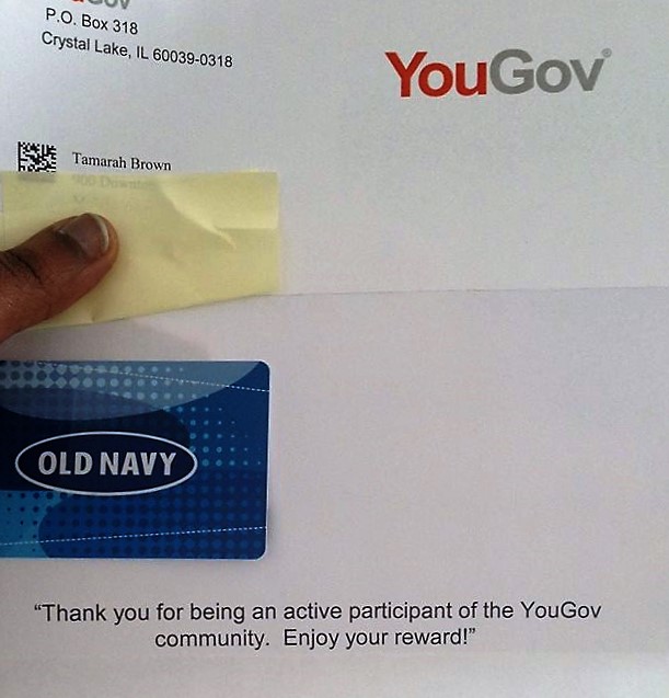 You Gov– You receive surveys as often as you like. I actually would suggest you choose this option because you have to let the points build for the good prizes (gift cards). Some of the rewards I have earned so far are a Target, Old Navy and Applebee’s Gift Card (valued at $50.00 each). For those who are interested here’s my referral link.