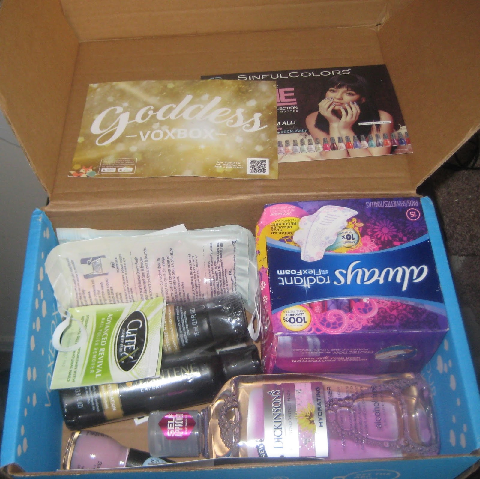 Recently, I was chosen by Influenster to receive one of their Goddess Vox Box to review. For those who are unfamiliar Influenster is a product discovery and reviews platform. I recently signed up and this is my first box. This box includes products Always Radiant Regular with Wings Scented Pads, Cutex Advanced Revival Nail Polish Remover Pads, Pantene Expert Intense Hydration Shampoo & Conditioner, Dickinson’s Enhanced Witch Hazel Hydrating Toner, Cutex, Ebates & Sinful Colors. Here are my thoughts below.