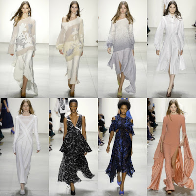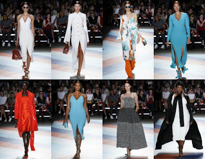 This collection has received many rave reviews for many fashion professionals and it is easy to see why. The designer featured five prominent plus-size models Precious Lee (bottom row Fourth image), Sabina Karlsson(top row Fourth image), Marquita Pring (bottom row Second Image from left), Georgia Pratt and Alessandra Garcia Lorido. Siriano also featured several models of color in various shades. This designer definitely gets why representation is so important.