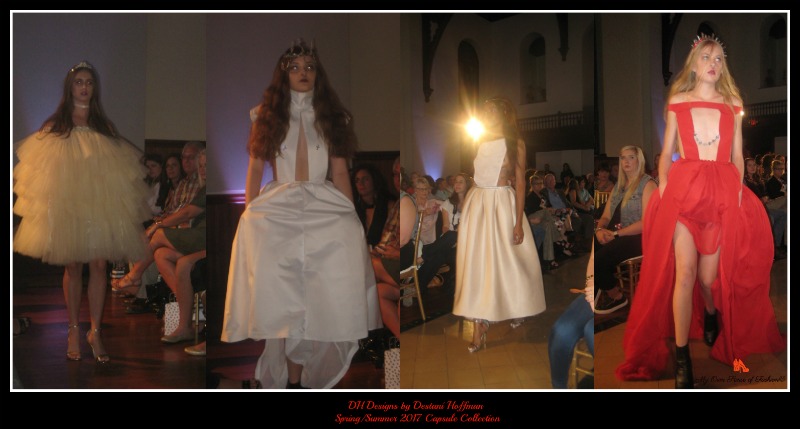 The high school designer’s collection was inspired by her aunt who unfortunately passed away from cancer. One of my favorite looks was the white paint splattered outfit consisting of a long sleeved crop top and high waist pants. The designer was also the recipient of the 2016 MOBFW Junior Designer Scholarship which awards $1,500 towards to the school of the winner’s choice to major in any aspect of the fashion industry from photography to fashion/costume design.