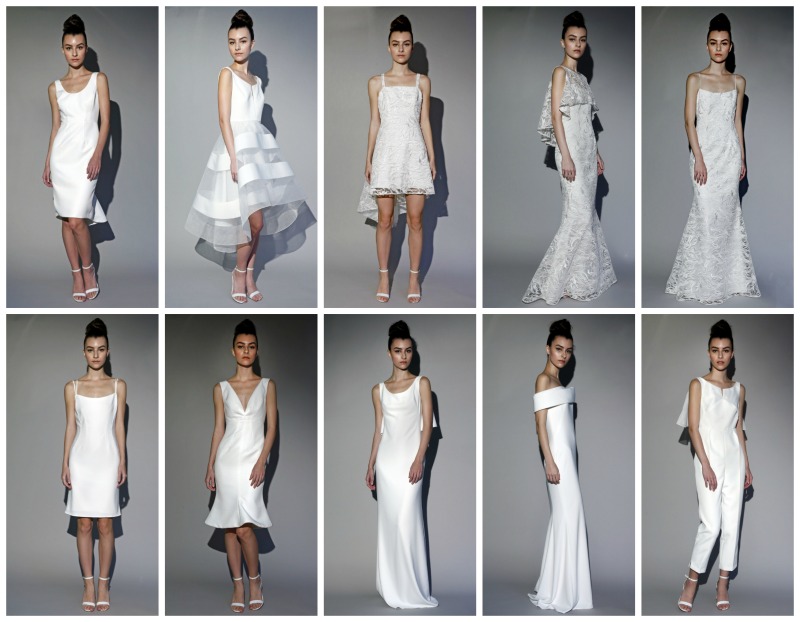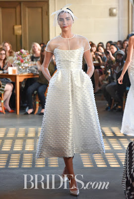 One of the main messages of this bridal collection is convenience. Here is what the designer told WWD, “When I go to trunk shows around the country, I meet so many brides who love the idea of wearing the most extravagant, gorgeous, ceremonial gown — but then they want something else to dance in.” What I particularly like is that they are some cocktail dress options for brides who might be looking for a shorter gown.
