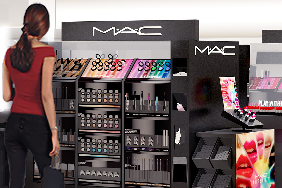 A rendering of a MAC Cosmetics gondola for Ulta Beauty stores