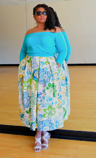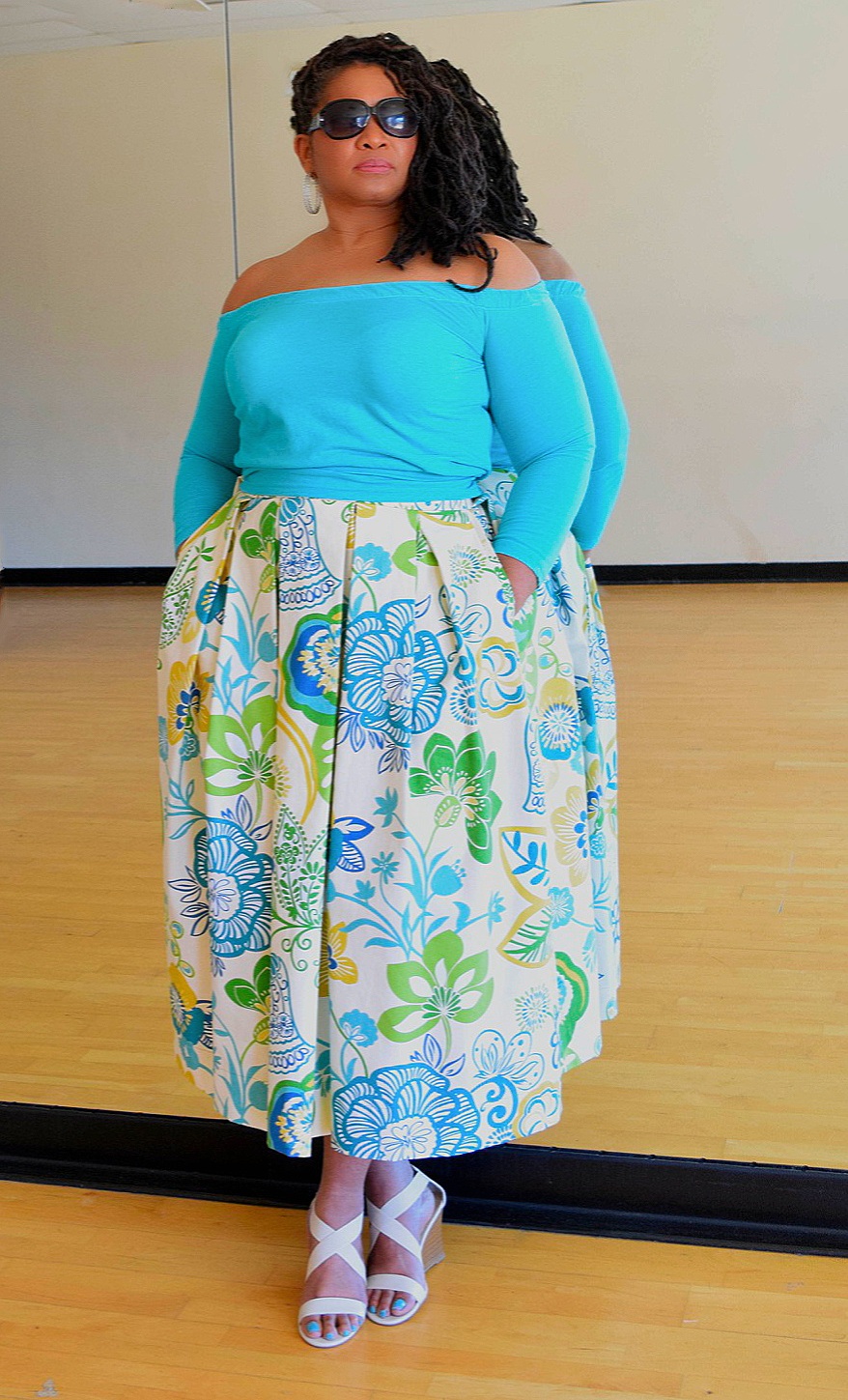 “Sabrina” Off Shoulder Knit Crop Top & “Violet” Box Pleat Midi Skirt from LUXE AND CURVES ResortWear 2017 Collection