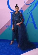Tonight, the 2017 CFDA Fashion Awards took place at The Manhattan Center’s Hammerstein Ballroom. The award show highlights some of the top talents in the fashion industry. This year’s host is SNL Alum and Late Night Host Seth Meyers. Several notable nominees were awarded during this year’s ceremony including the 2017 Fashion Icon Award to Franca Sozzani who served as Editor-in-chief– of Vogue Italia until her unfortunate passing last December. Of course, while we looking forward to all this year’s nominees we couldn’t overlook all the red-carpet fashion. Several of the ladies were loving the pantsuits. Check out the blue carpet looks below.