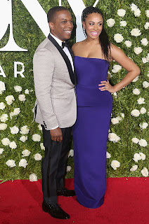 Actors Leslie Odom Jr. (Hamilton) in Zegna and wife Nicolette Robinson in Romona Keveza Collection